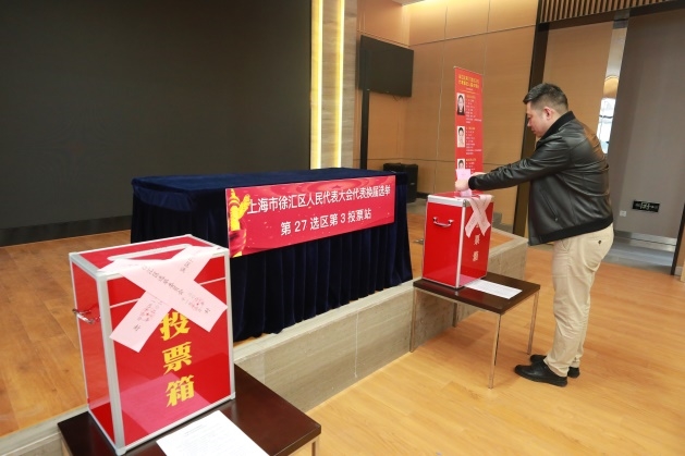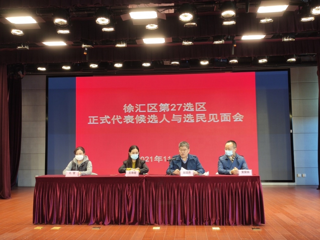 “請(qǐng)出示您的選民證,并領(lǐng)取選舉票,如果有疑問(wèn),可以向工作人員進(jìn)行咨詢(xún)。”上午8時(shí)15分,徐匯區(qū)第27選區(qū)第3投票站(寶慶路21號(hào)5201室)內(nèi),選舉工作人員已準(zhǔn)備就緒,投票工作正在有序進(jìn)行。現(xiàn)場(chǎng)布置隆重而莊嚴(yán),設(shè)有簽到處、驗(yàn)證發(fā)票處、寫(xiě)票處、代書(shū)處、秘密寫(xiě)票處、投票處。
