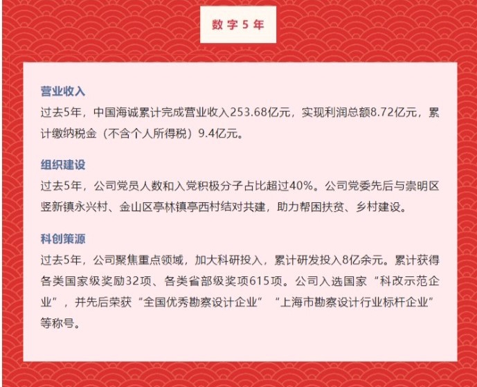 截至2021年,中國(guó)海誠(chéng)擁有國(guó)家級(jí)高新技術(shù)企業(yè)9家,省級(jí)企業(yè)技術(shù)中心1家,省級(jí)工程研究中心1家;擁有有效專利 554 件,其中發(fā)明專利139件,開(kāi)發(fā)并獲得軟件著作權(quán) 48 件;主編國(guó)家行業(yè)標(biāo)準(zhǔn)規(guī)范20項(xiàng),參編國(guó)家行業(yè)規(guī)范標(biāo)準(zhǔn)21項(xiàng);參編地方標(biāo)準(zhǔn)12項(xiàng);參編團(tuán)體標(biāo)準(zhǔn)4項(xiàng),充分發(fā)揮行業(yè)引領(lǐng)作用;累計(jì)斬獲各類優(yōu)秀工程項(xiàng)目獎(jiǎng)、科技技術(shù)獎(jiǎng)2766項(xiàng),其中國(guó)家級(jí)獎(jiǎng)項(xiàng)191項(xiàng)。2021年斬獲數(shù)字化BIM技術(shù)應(yīng)用獎(jiǎng)9項(xiàng)。日前,中國(guó)海誠(chéng)還入選國(guó)家“科改示范企業(yè)”。