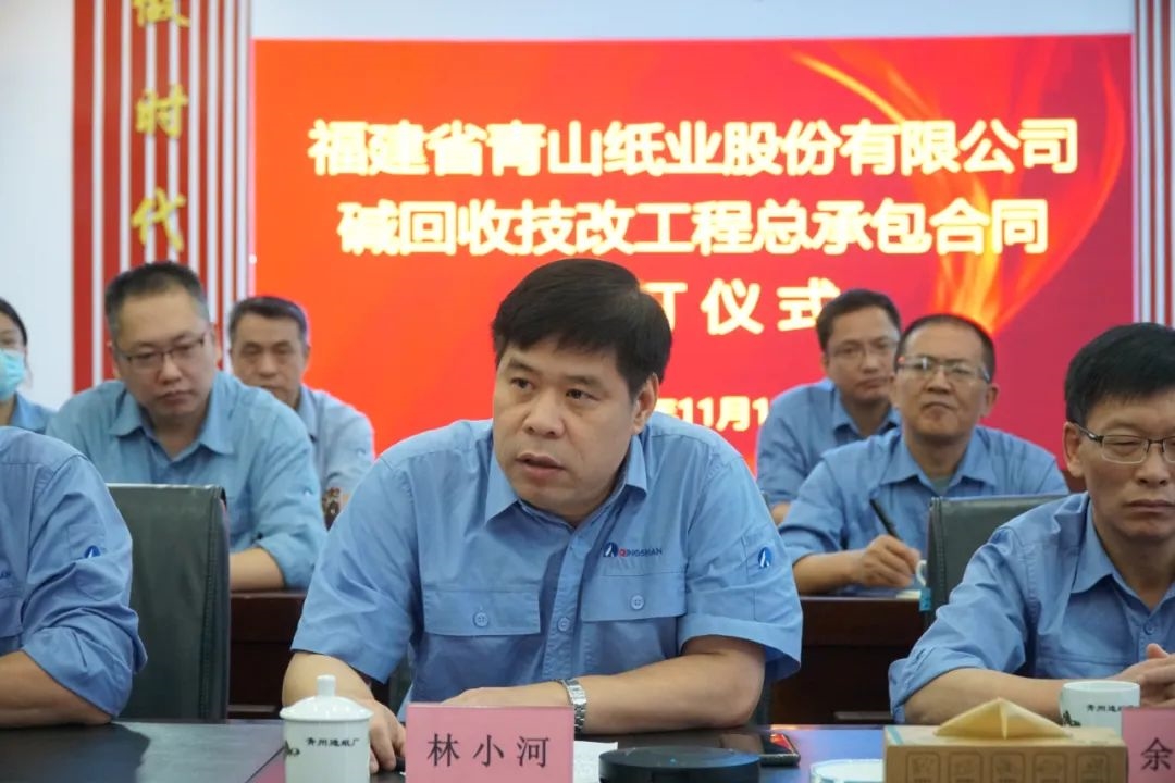 儀式現(xiàn)場,福建省青山紙業(yè)股份有限公司黨委書記、總經(jīng)理林小河與中國海誠長沙公司總經(jīng)理助理、制漿造紙事業(yè)部總經(jīng)理張成峰簽訂總承包合同。該項目的成功實施將有效解決青山紙業(yè)現(xiàn)有生產(chǎn)系統(tǒng)所存在的漿堿紙能力不平衡等問題,有利于生產(chǎn)裝備技術(shù)水平的整體提高,降本增效、節(jié)能降耗、減排治污,實現(xiàn)企業(yè)綠色循環(huán)持續(xù)發(fā)展。
