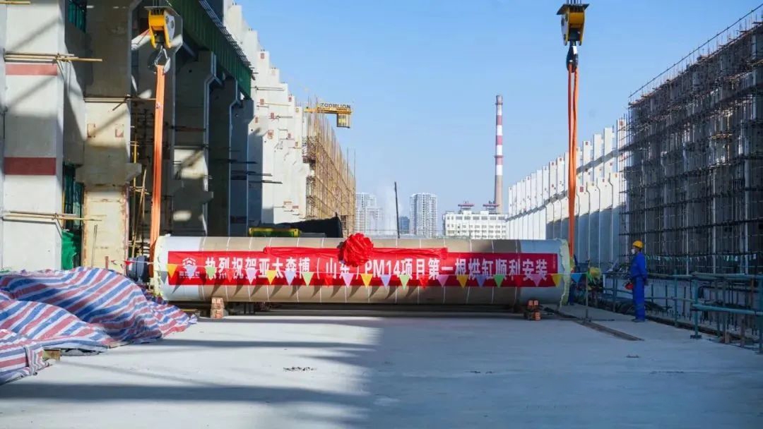 ·亞太森博年產(chǎn)50萬噸高檔文化紙PM14項(xiàng)目首臺烘缸成功安裝