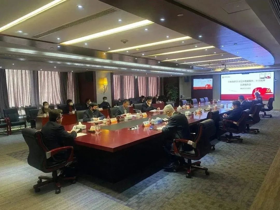 安勝杰從“全面準確學習領會黨的二十大精神”“全面貫徹落實黨的二十大精神,推動保利中輕加快建設世界一流科技企業(yè)”兩個方面對深入學習貫徹黨的二十大精神進行宣講。