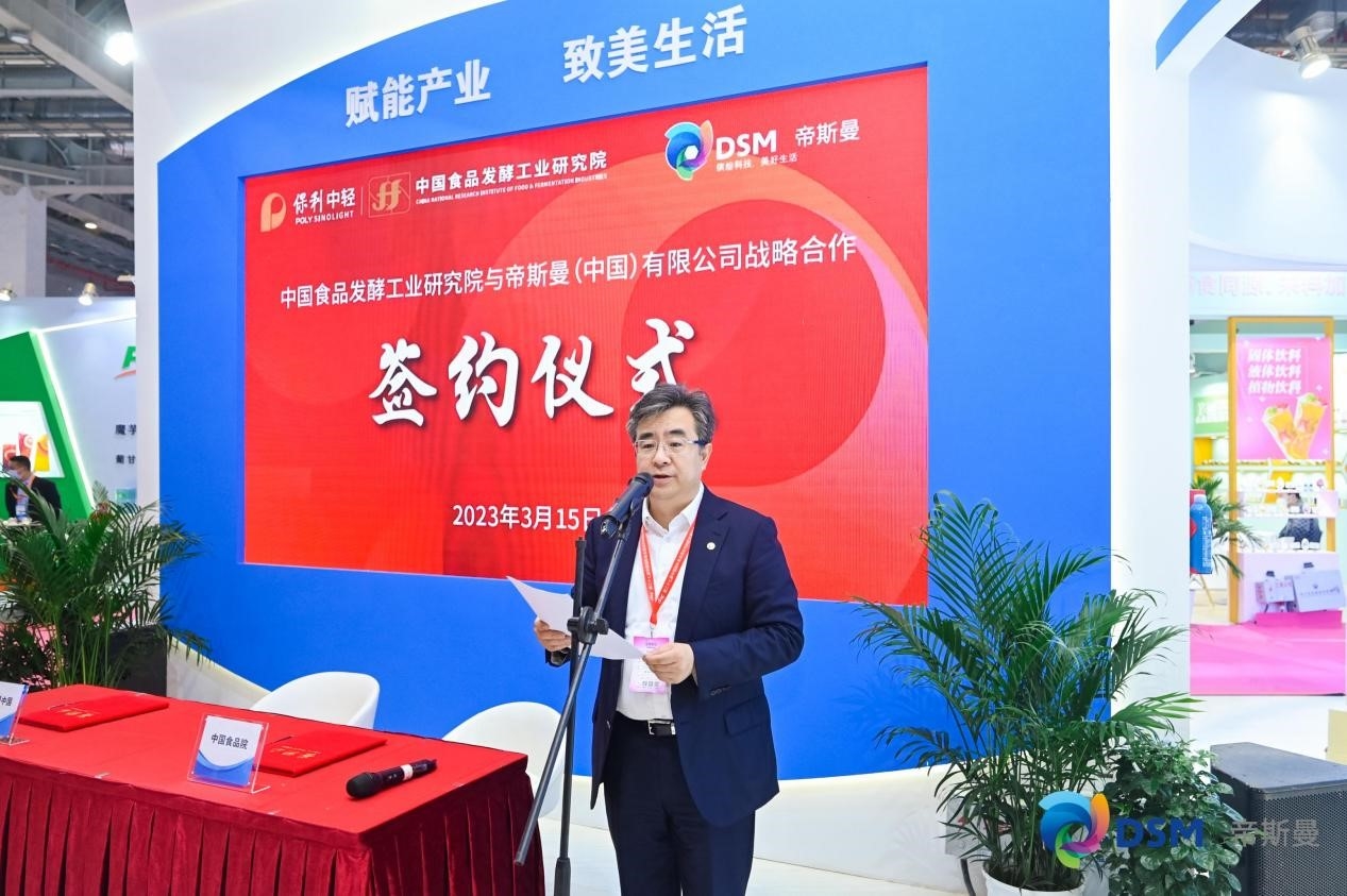 展會期間,中國食品發(fā)酵工業(yè)研究院與帝斯曼(中國)有限公司舉行“營養(yǎng)健康原料標準化聯(lián)合研究中心”戰(zhàn)略合作簽約儀式。安勝杰表示,雙方將發(fā)揮帝斯曼集團在健康、營養(yǎng)和生物科學領域等方面的核心技術優(yōu)勢,以及中國食品發(fā)酵工業(yè)研究院在食品發(fā)酵行業(yè)質量安全保障、成果產業(yè)化、產品研發(fā)資源等方面的行業(yè)積淀,實現(xiàn)創(chuàng)新發(fā)展、互惠互利,共同推動食品產業(yè)標準化水平和質量安全的全面提升。