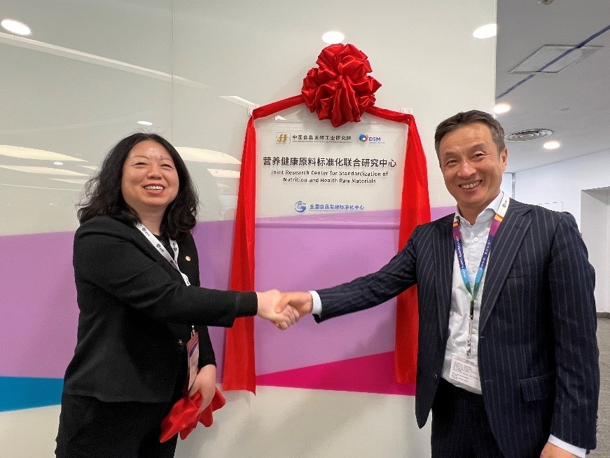 簽約儀式后,肖丹帶隊到帝斯曼(中國)總部和研發(fā)中心進行考察對接,參觀帝斯曼中心實驗室,并為“營養(yǎng)健康原料標準化聯(lián)合研究中心”揭牌。