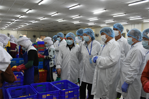 此外,曹春昱一行還赴金邊本地Kirirom食品加工廠和KHMER BEVERAGES啤酒公司進行調(diào)研考察,參觀了芒果干生產(chǎn)車間、啤酒生產(chǎn)線及檢測實驗室,與企業(yè)相關(guān)負責(zé)人進行深入交流。雙方就芒果制品深加工,特別是在芒果飲料、芒果酵素等新產(chǎn)品開發(fā)和技術(shù)交流方面合作,達成初步合作意向。