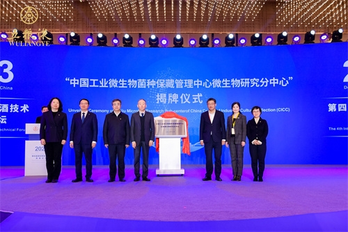 開幕式上,中國食品發(fā)酵工業(yè)研究院與宜賓五糧液股份有限公司共建的“中國工業(yè)微生物菌種保藏管理中心白酒微生物研究分中心”揭牌儀式順利舉行,保利中輕副總經(jīng)理,中國食品發(fā)酵工業(yè)研究院黨委書記、董事長肖丹與宜賓五糧液股份有限公司總工程師楊韻霞共同揭牌。安勝杰與中國酒業(yè)協(xié)會(huì)理事長宋書玉,農(nóng)業(yè)農(nóng)村部中國農(nóng)村技術(shù)開發(fā)中心副主任張松梅,五糧液集團(tuán)(股份)有限公司黨委書記、董事長曾從欽,中國工程院院士、江南大學(xué)校長陳衛(wèi)共同見證。“中國工業(yè)微生物菌種保藏管理中心白酒微生物研究分中心”是按照國家標(biāo)準(zhǔn)菌種資源庫組建的白酒行業(yè)最大的菌種保藏平臺(tái),該平臺(tái)現(xiàn)已收藏五糧液釀造微生物菌種400余種、1000余株、20000余份備份,為五糧液乃至中國白酒技術(shù)創(chuàng)新及生產(chǎn)應(yīng)用提供全面的菌種資源。