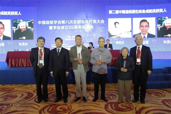 朱圣光獲中國造紙蔡倫終身成就獎(jiǎng)(右二)