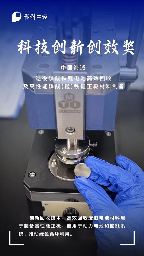 近日,保利集團(tuán)第一屆“青創(chuàng)杯”創(chuàng)新創(chuàng)效大賽結(jié)果公布。中國食品發(fā)酵工業(yè)研究院(簡稱“中國食品院”)開發(fā)的“食品安全標(biāo)準(zhǔn)菌株和標(biāo)準(zhǔn)樣品產(chǎn)業(yè)化應(yīng)用”項(xiàng)目獲成果轉(zhuǎn)化創(chuàng)效獎(jiǎng),中國海誠開發(fā)的“退役磷酸鐵鋰電池高效回收及高性能磷酸(錳)鐵鋰正極材料制備”項(xiàng)目獲科技創(chuàng)新創(chuàng)效獎(jiǎng)。此次獲獎(jiǎng)再次彰顯保利中輕在科技創(chuàng)新工作方面的顯著成效??靵韲^,一起為他們打call!