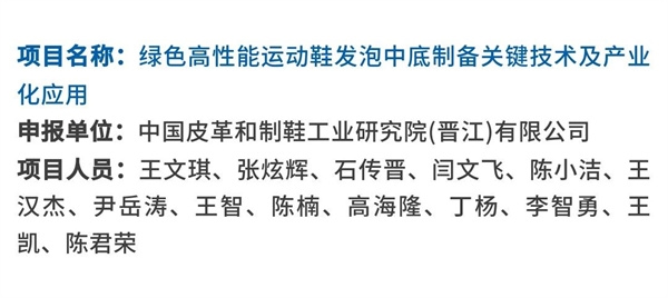 中國皮革制鞋院晉江公司申報的“綠色高性能運動鞋發(fā)泡中底制備關(guān)鍵技術(shù)及產(chǎn)業(yè)化應用”項目,以典型鞋用EVA和TPU彈性體為基體,開展了綠色高性能運動鞋發(fā)泡中底制備關(guān)鍵技術(shù)及產(chǎn)業(yè)化應用相關(guān)工作,揭示了相關(guān)材料改性調(diào)控機制、內(nèi)在發(fā)泡行為及作用機理。項目成果填補了制鞋行業(yè)在發(fā)泡EVA中底和生物質(zhì)改性TPU中底領(lǐng)域空白。