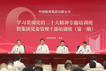 6月5日,保利集團學習貫徹黨的二十大精神專題培訓班暨集團黨委管理干部培訓班(第一期)在京開班。國務院國資委主題教育第八巡回指導組組長董長清一行蒞臨指導,集團公司黨委書記、董事長劉化龍出席開班式作開班動員講話,并講授專題黨課?;顒佑杉瘓F公司黨委副書記張浩主持。