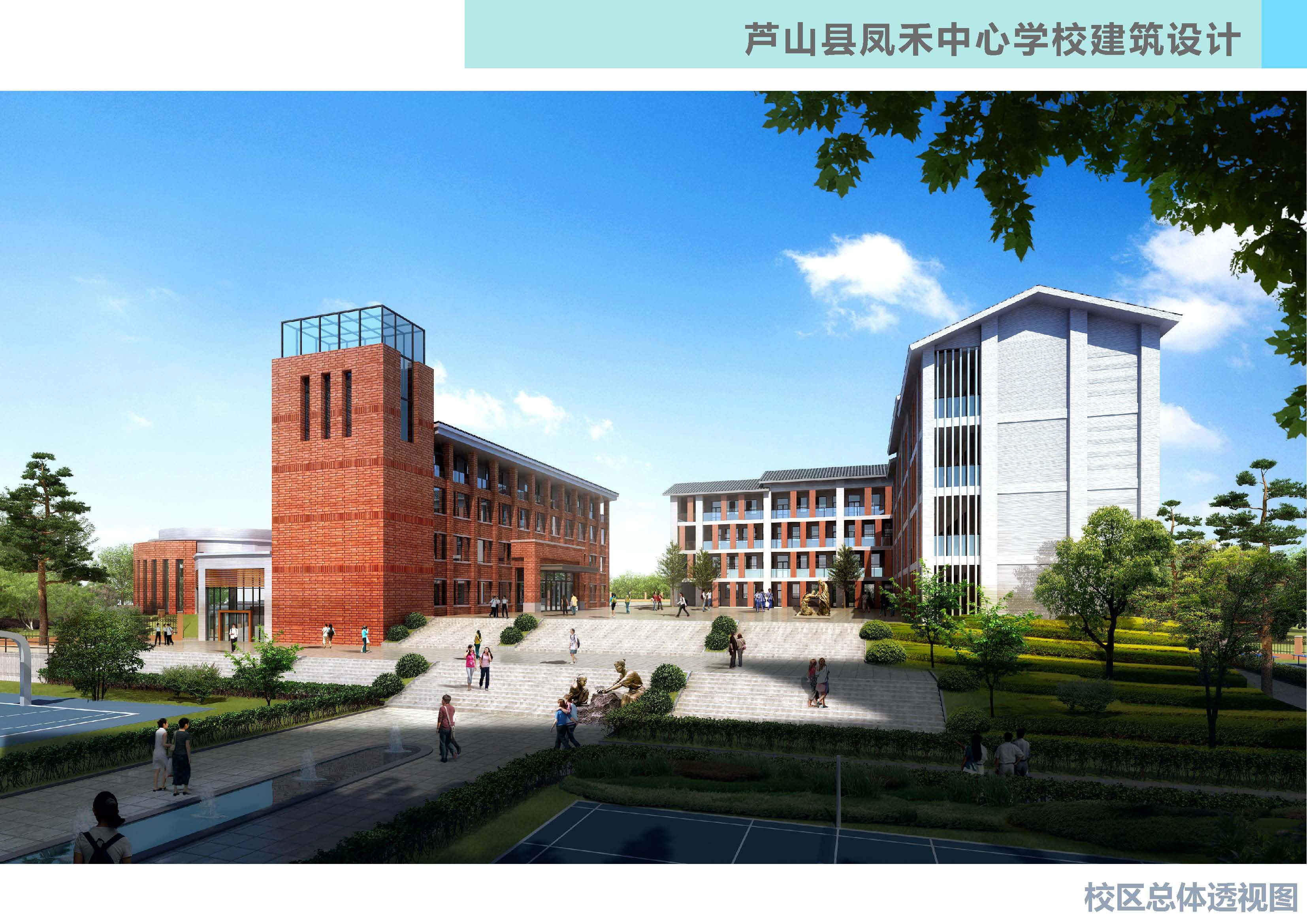 蘆山縣鳳禾中心校的災后重建工程,本工程的援建方為藍光集團,改建后學校將更名為蘆山藍光中心校。本次改建工程主要包括,新建綜合樓2500平方米,改建運動場地及學校廣場約14000平方米,改建原有教學樓、食堂、宿舍樓等外立面約6200平方米