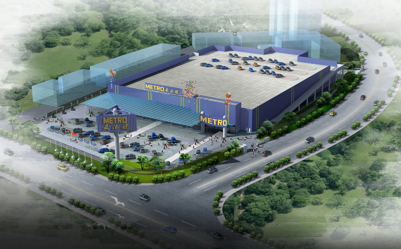 麥德龍中山商場由麥德龍集團公司在中國投資,屬于大型倉儲式會員制現(xiàn)購自運式商場。工程建在廣東省中山市翠景路以西的地塊,總建設用地16190.9m2,總建筑面積11393.0 m2,其中商場建筑面積10804.4 m2,停車位雨篷1012.2m2,卸貨雨篷132.0 m2,三個門衛(wèi)各5.5 m2。