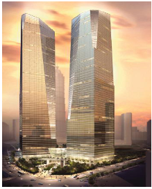 上海國際金融中心項目是一個多功能的高層公共建筑群體,由共同坐落在同一群體上的(三個高度不一的高層塔樓組成)。該項目由位于東側(cè)的楊高路和西側(cè)的竹林路兩條主干道之間,南側(cè)毗鄰張家浜河道。該建筑地下四層,三棟塔樓,32層,高度200米。塔樓組合由位于7至9層的步行天橋相互連接,7至8層的天橋區(qū)和與之對應(yīng)的塔樓區(qū)域?qū)⒆鳛楣灿猛?,如博物館和多功能廳;該塔樓組合也將通過地下四層的區(qū)域相互連通。B1和B2包括一個劇場,餐廳,雇員\員工餐廳,包括籃球場的健身區(qū)域以及機電設(shè)備空間。B5和B3層主要用作整個建筑綜合體的停車庫區(qū)域。該項目地上總建筑面積25萬平方米,地下25萬平方米。